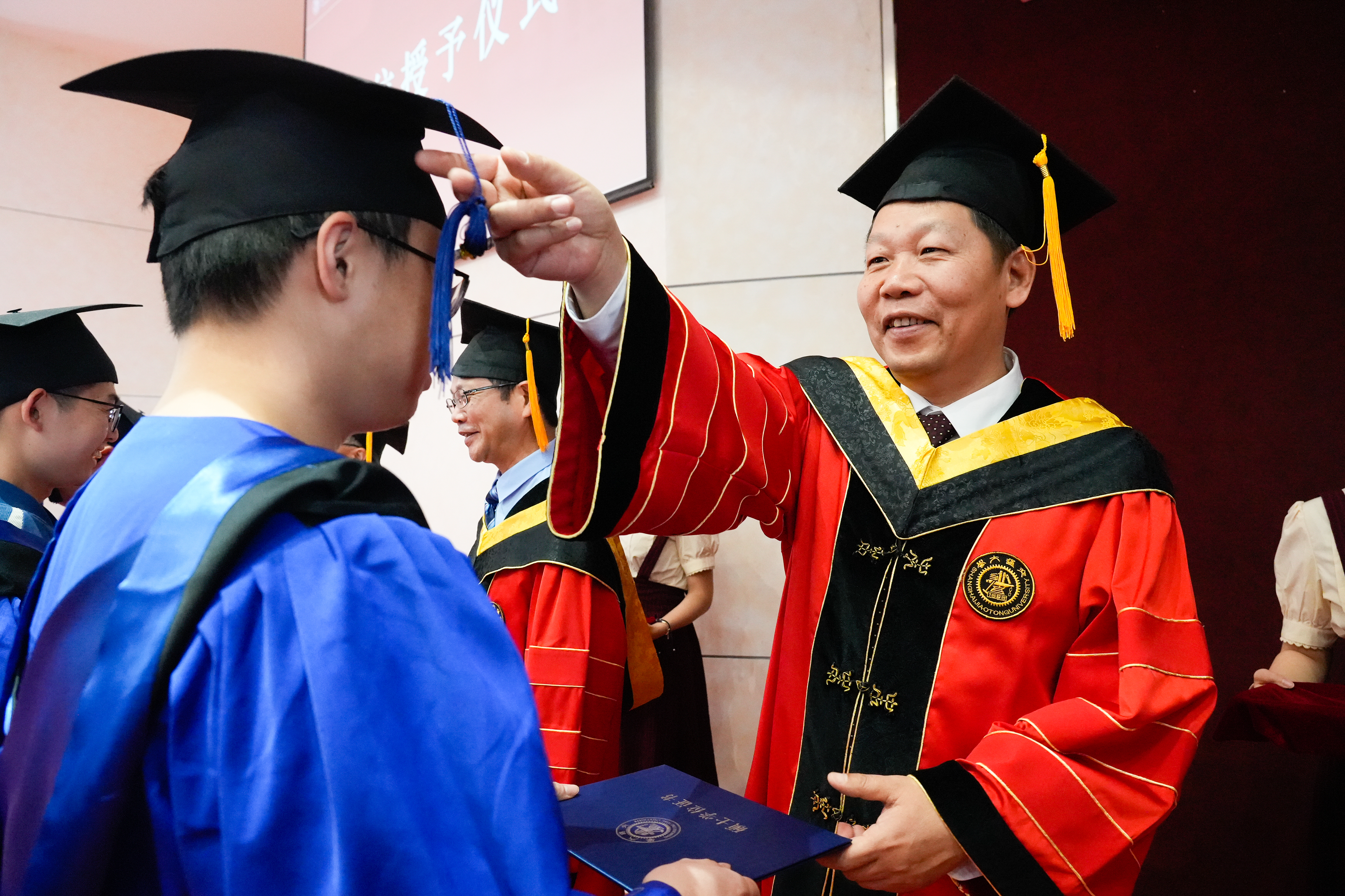 在112年的发展历程中,学院已培养了24000余名研究生,他们将个人发展融入祖国建设的长河。今年,2025届研究生毕业生将奔赴世界各地,继续探索未至之境。在庄严隆重的学位授予仪式环节,导师为毕业生依次拨穗正冠,颁发学位证书。